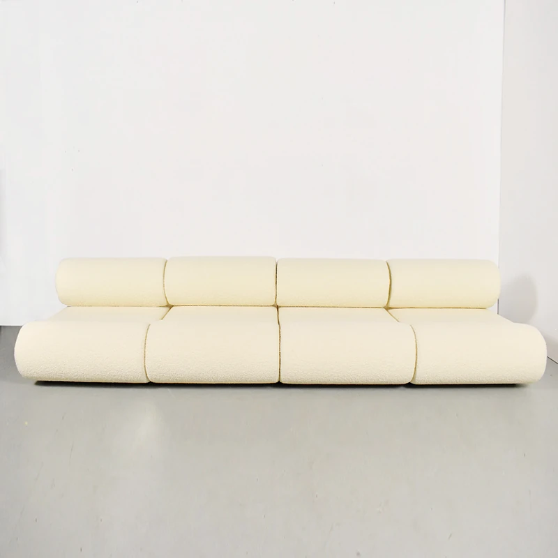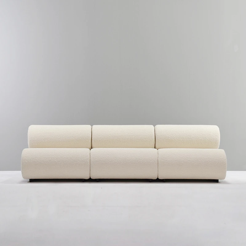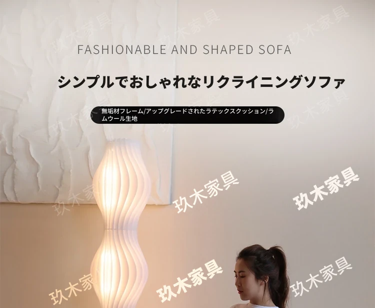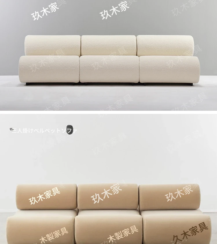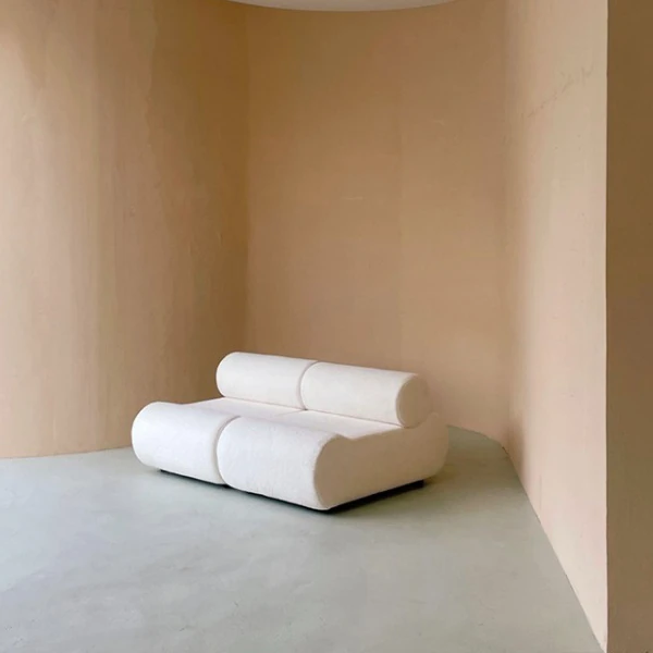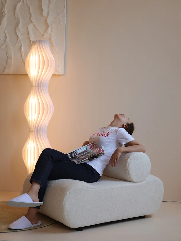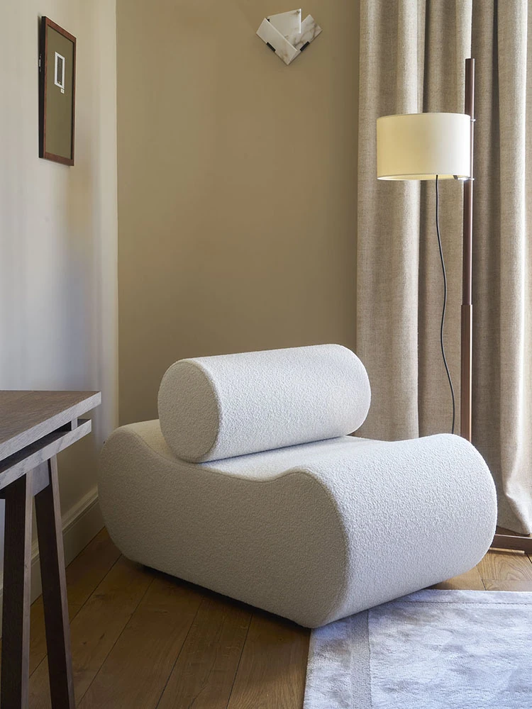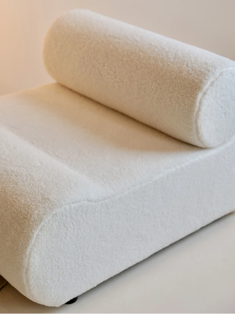 侘寂スタイルのクリーム色ファブリック一人掛けソファ、リラックスチェア。羊毛のようなフワフワの質感が心地よい!新しい民宿やカフェにぴったりの創造的なデザイン。おしゃれで快適なひと時をお楽しみください!