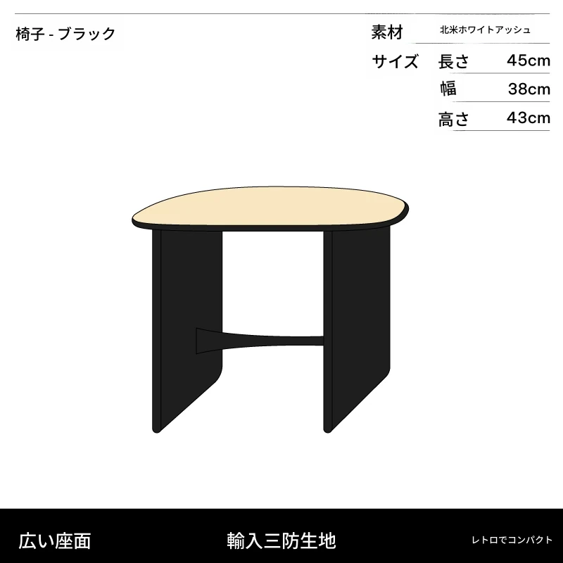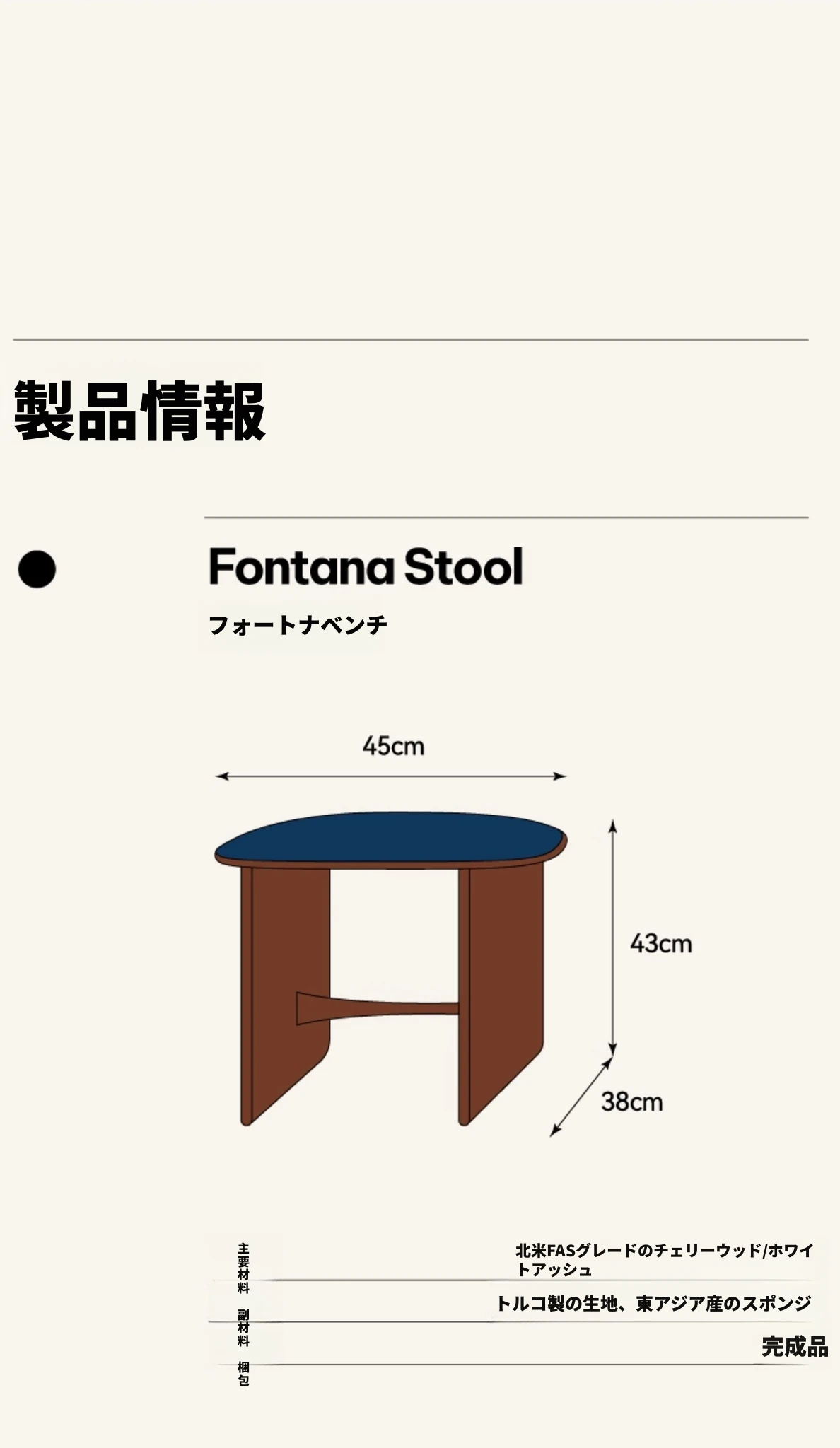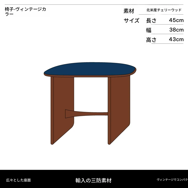 乙舟の家具 | レトロなソフトパッケージのドレッシングスツール、チェリーウッドの無垢材使用。おしゃれな化粧台や玄関のシューズスツールに最適!小さなスペースにもぴったり。