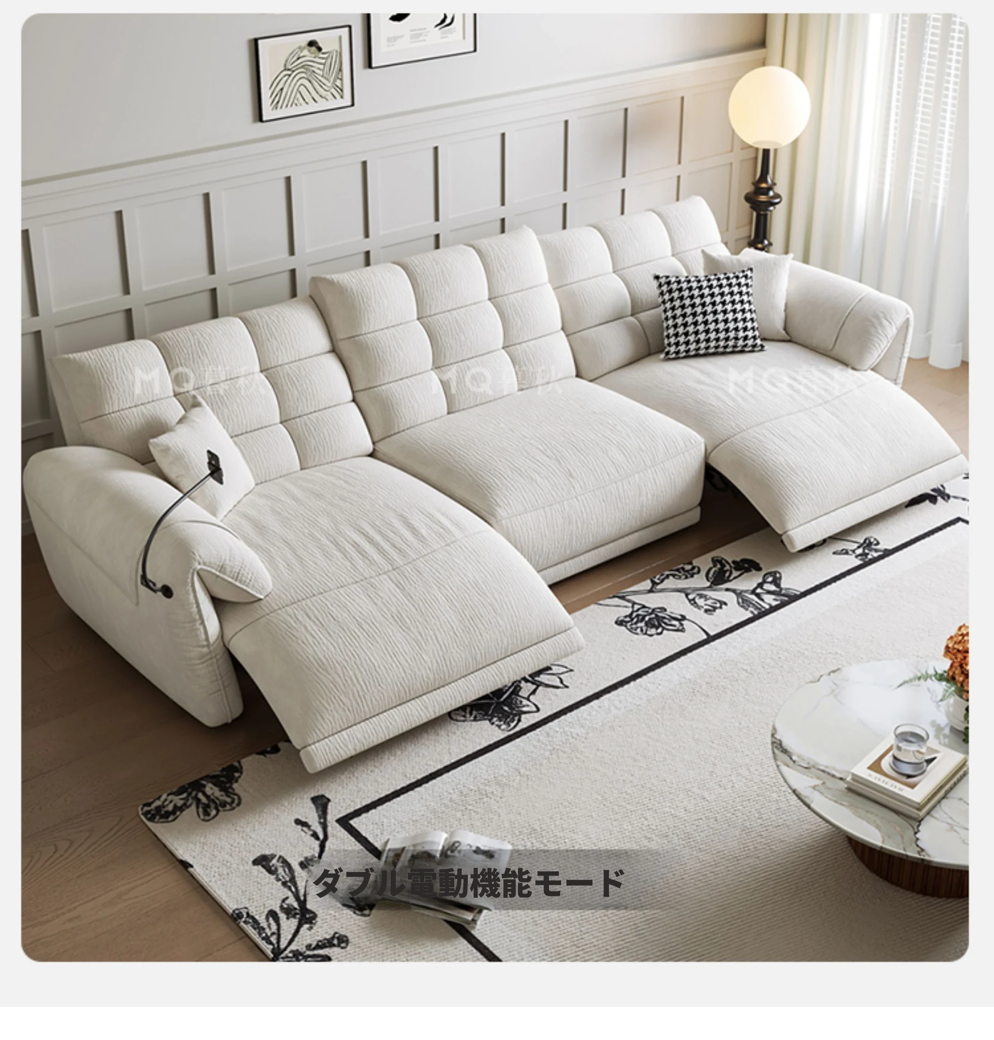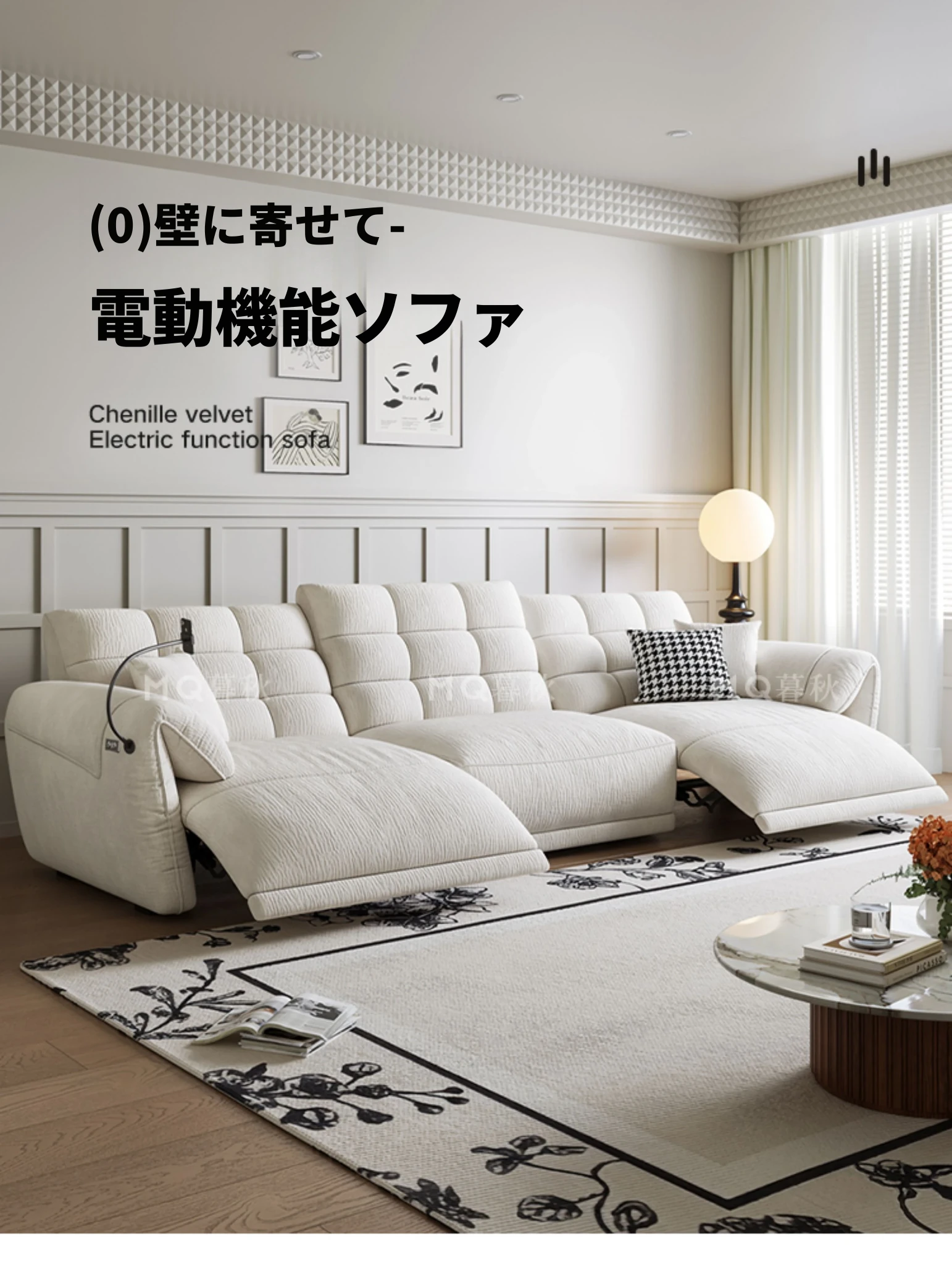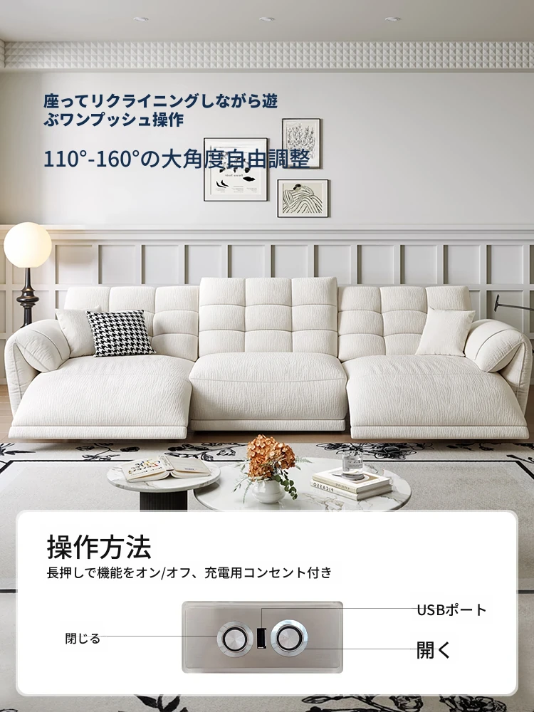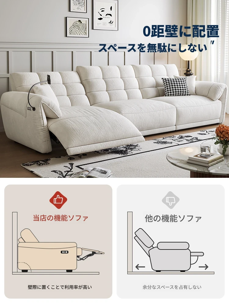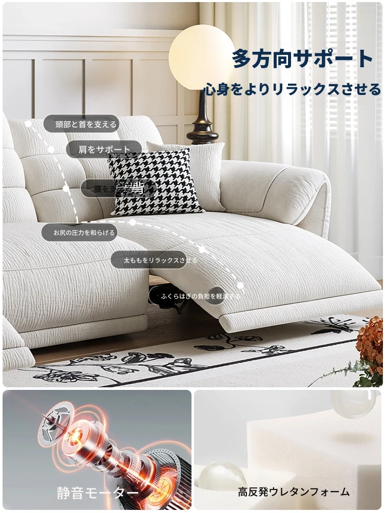 壁に寄せない電動シェニールソファ - 多機能・モダンミニマリストデザイン、リビングに最適!調整可能なヘッドレストで、究極の快適さを提供します!あなたのくつろぎ空間をアップグレードしましょう!