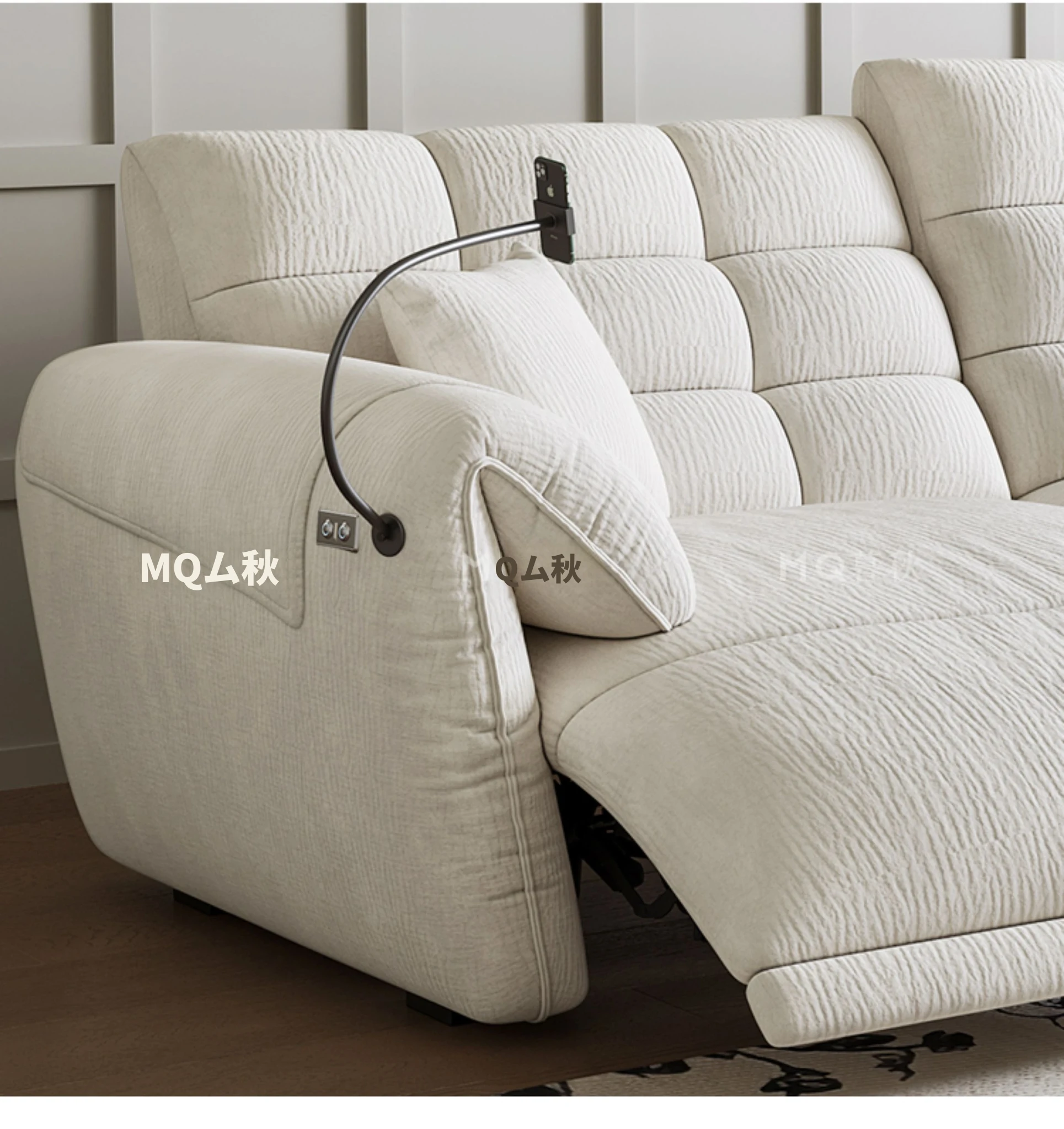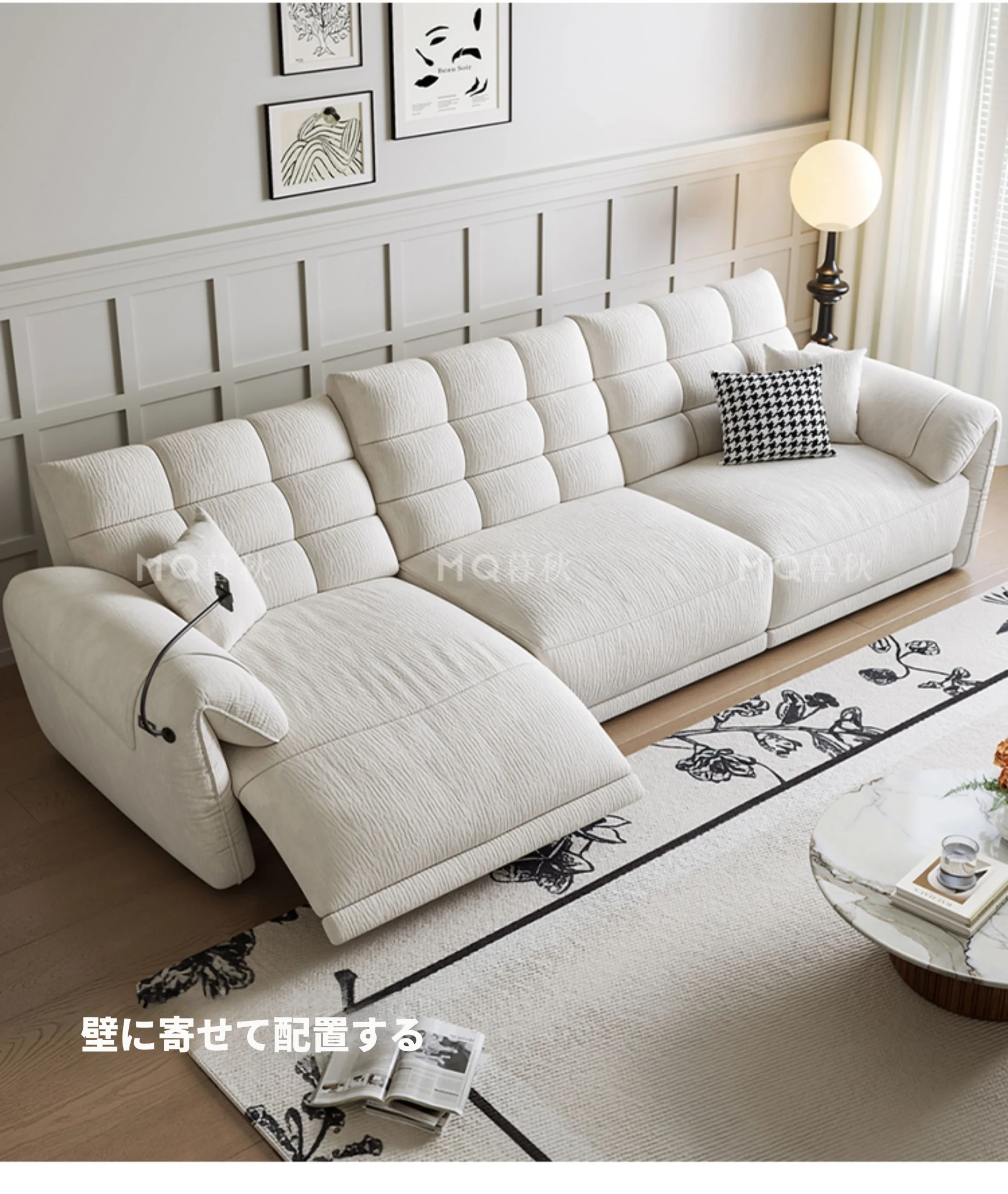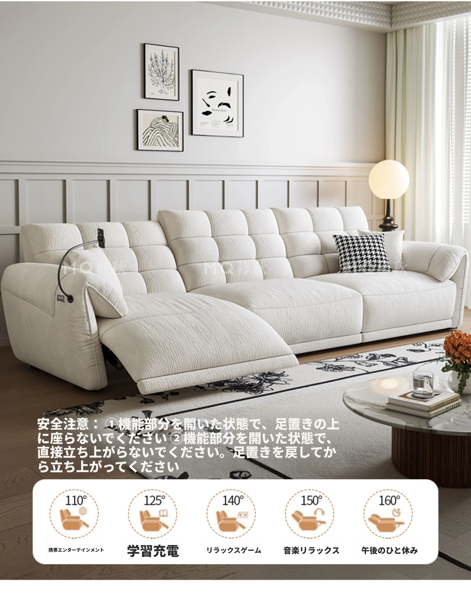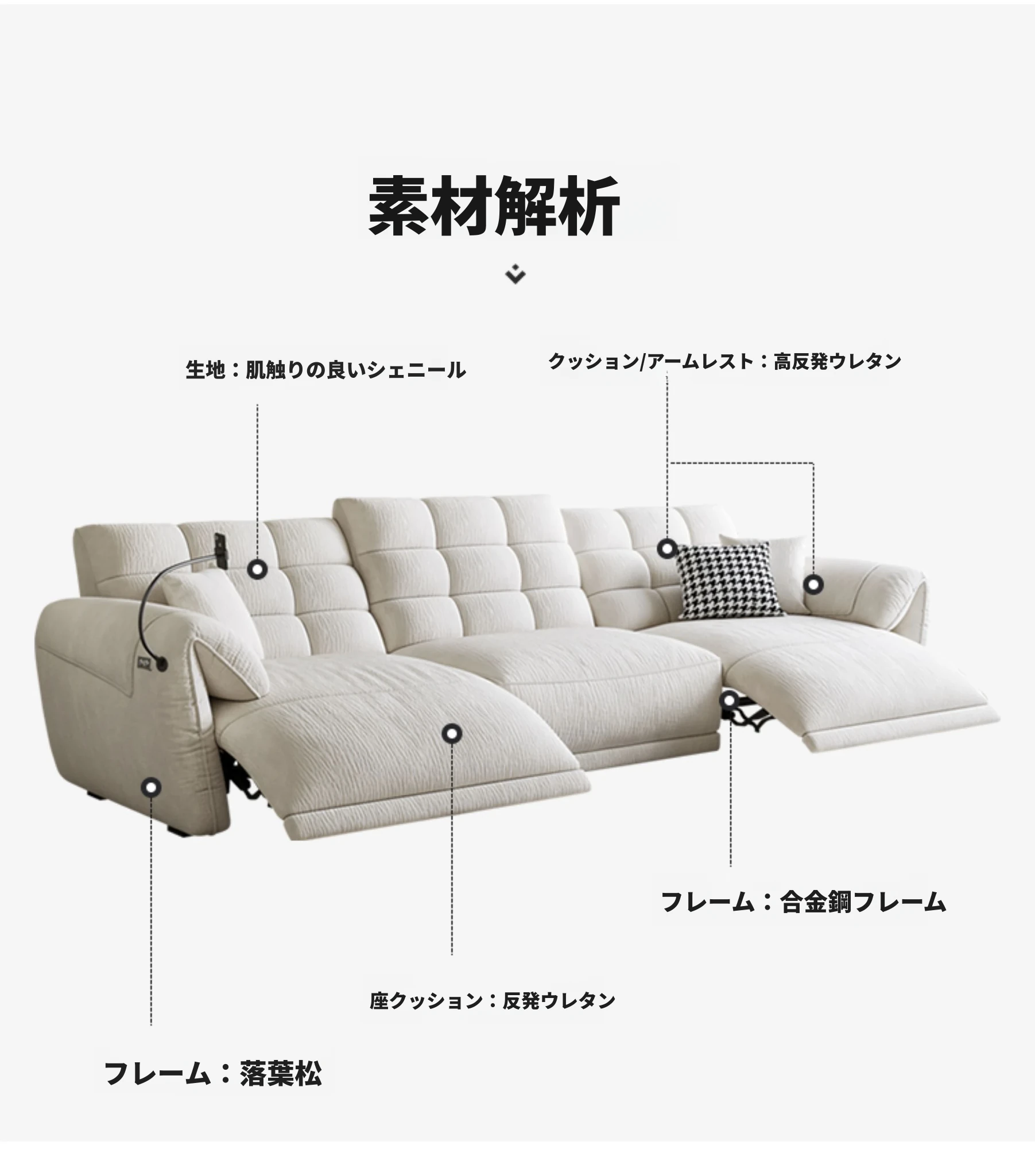 壁に寄せない電動シェニールソファ - 多機能・モダンミニマリストデザイン、リビングに最適!調整可能なヘッドレストで、究極の快適さを提供します!あなたのくつろぎ空間をアップグレードしましょう!