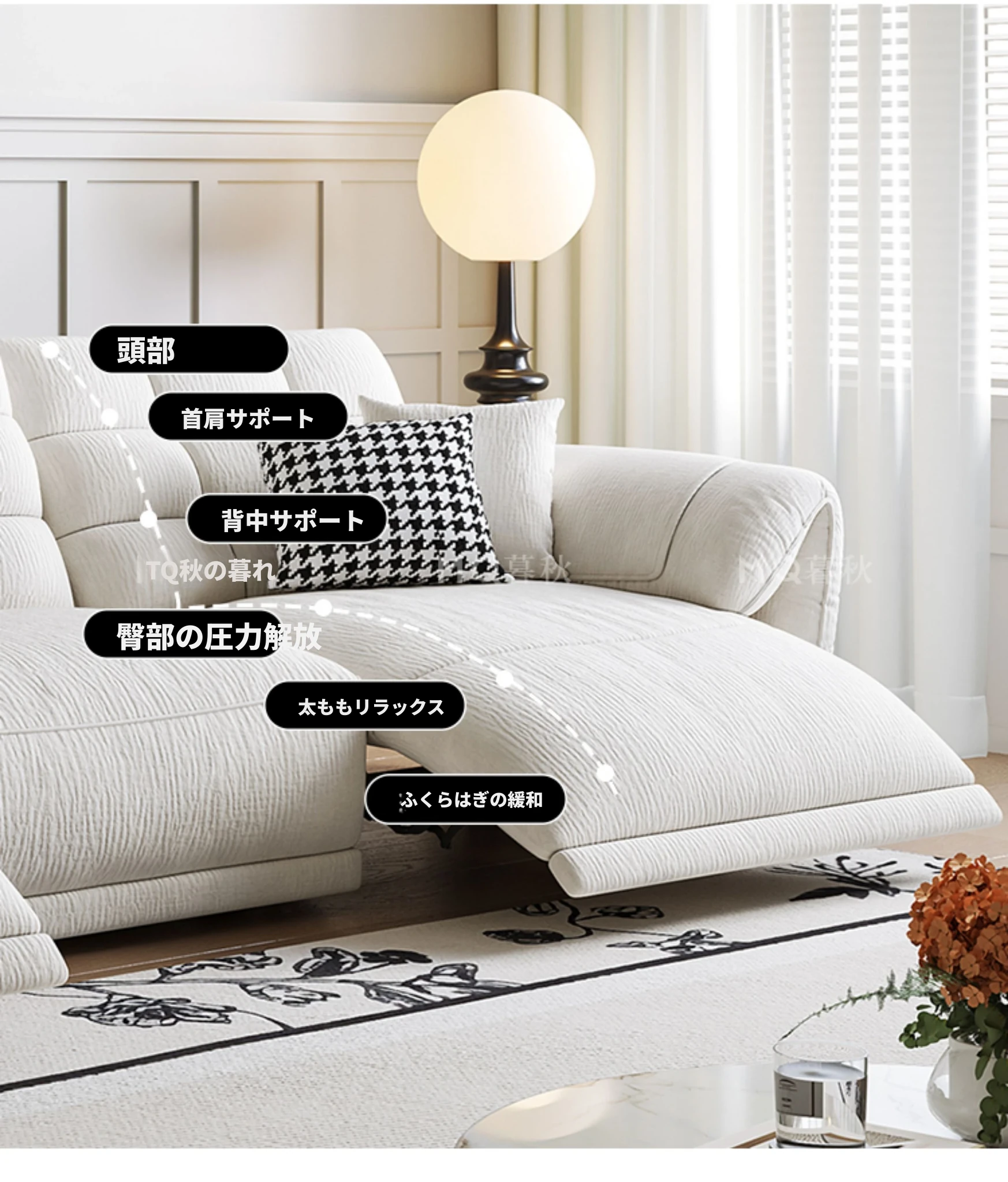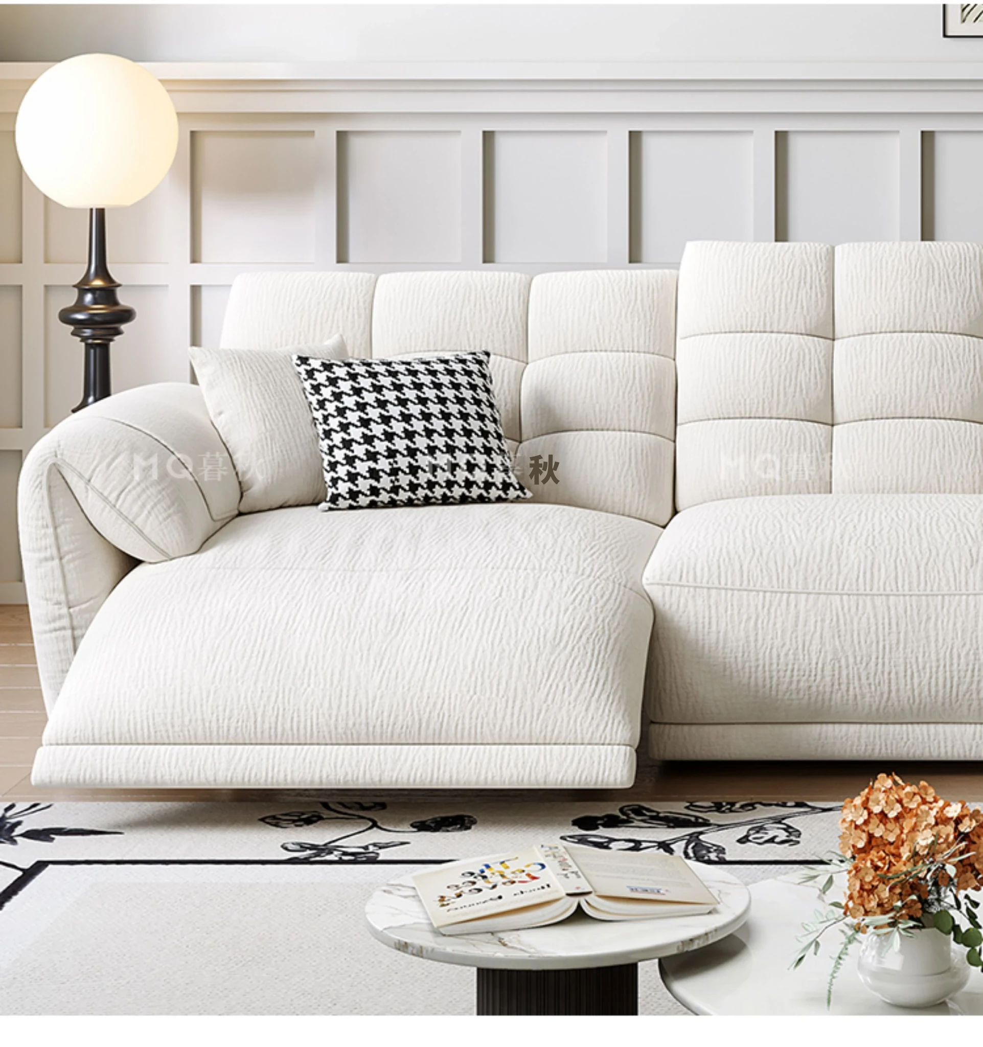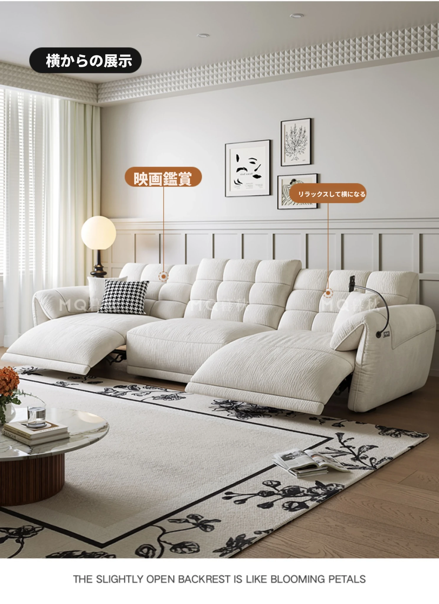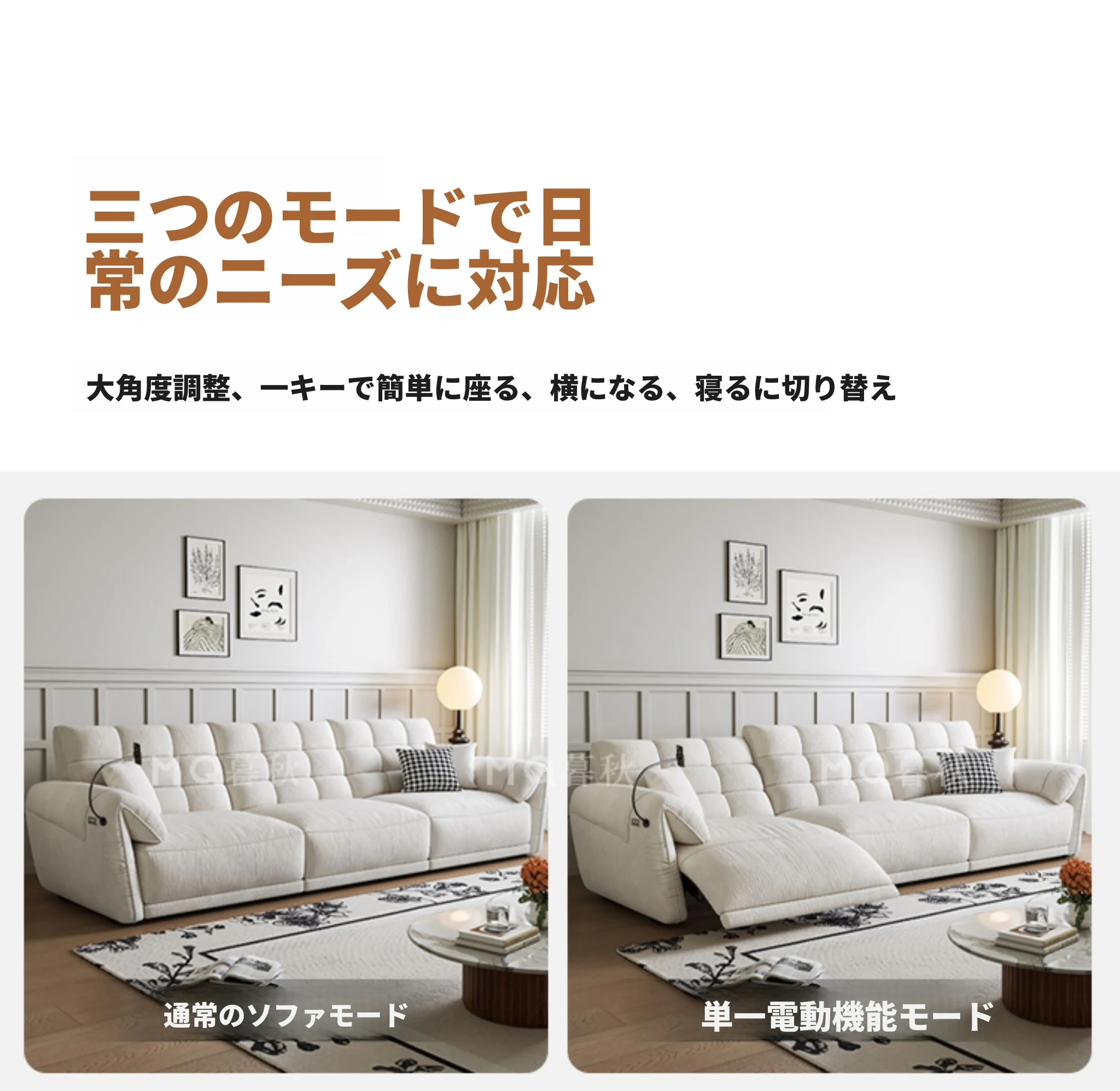 壁に寄せない電動シェニールソファ - 多機能・モダンミニマリストデザイン、リビングに最適!調整可能なヘッドレストで、究極の快適さを提供します!あなたのくつろぎ空間をアップグレードしましょう!