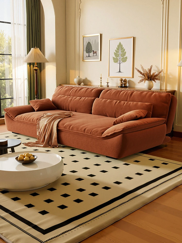 北欧風のライトラグジュアリー復古ファブリック小型ソファ|フレンチクリームモダンシンプルデザイン|クリエイティブストレートソファでおしゃれ空間を演出!