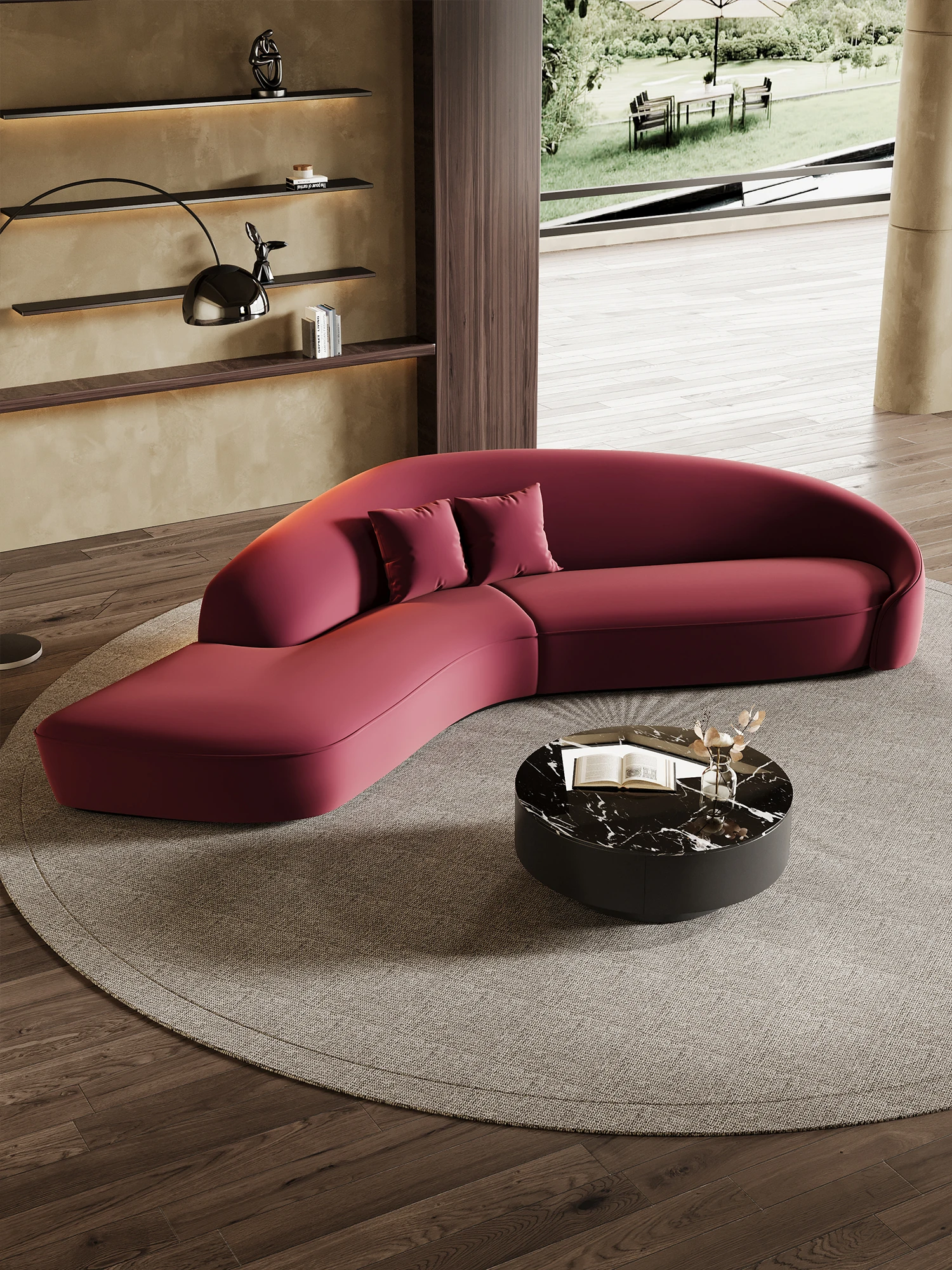 アーチ型デザインの異形コーナーソファ|小型住宅・美容院・オフィス休憩スペースに最適なラグジュアリー感!おしゃれで高級感あふれる接客エリアを演出します。