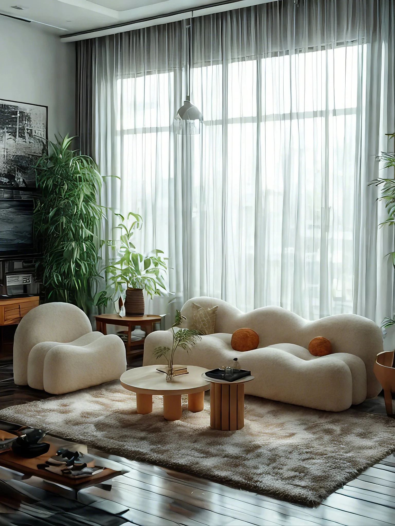 北欧スタイルのファッショナブルな雲のようなソファ - 個性的なデザインで、ホテルや美容院、アパレルショップの接客に最適!おしゃれさと快適さを兼ね備えた一品。