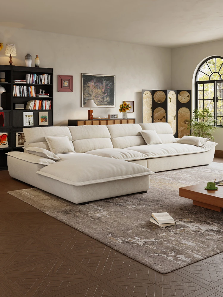 イタリアンミニマルライトラグジュアリーサンド布製カウチソファー - モダンでシンプル、ラテックス素材の人気デザイン!リビングにぴったりの全装備!