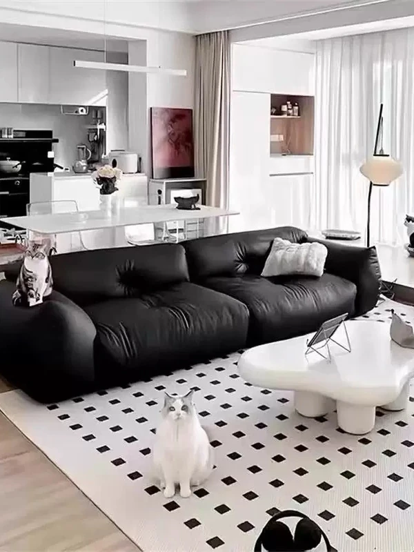 モダンでシンプルなイタリアンデザインの猫爪合皮ソファー - 高級感あふれるリビングルーム用の洗練されたデイベッド!広々とした大空間にピッタリ、軽やかなラグジュアリーを演出します。