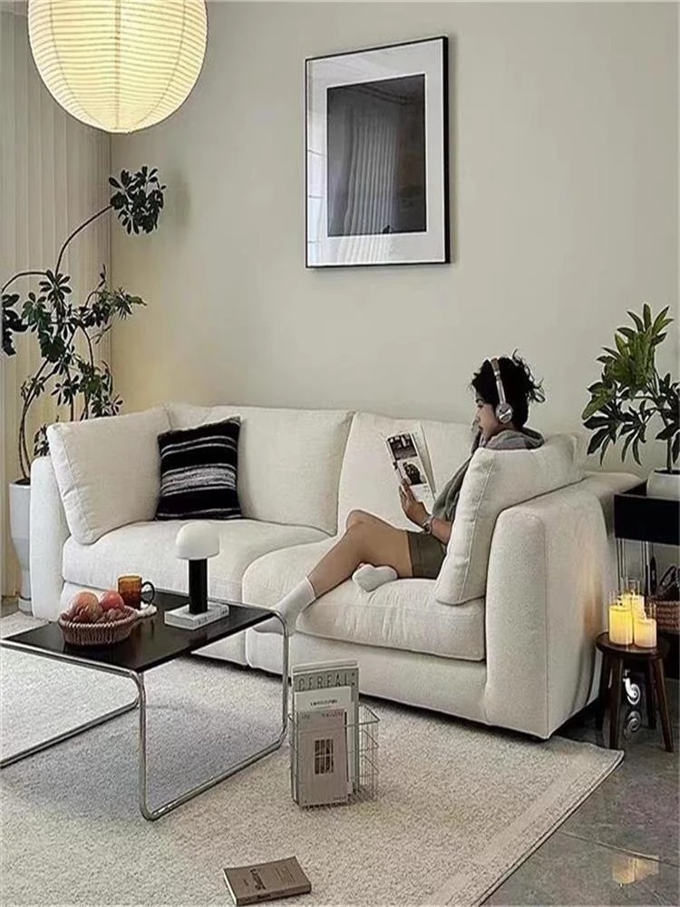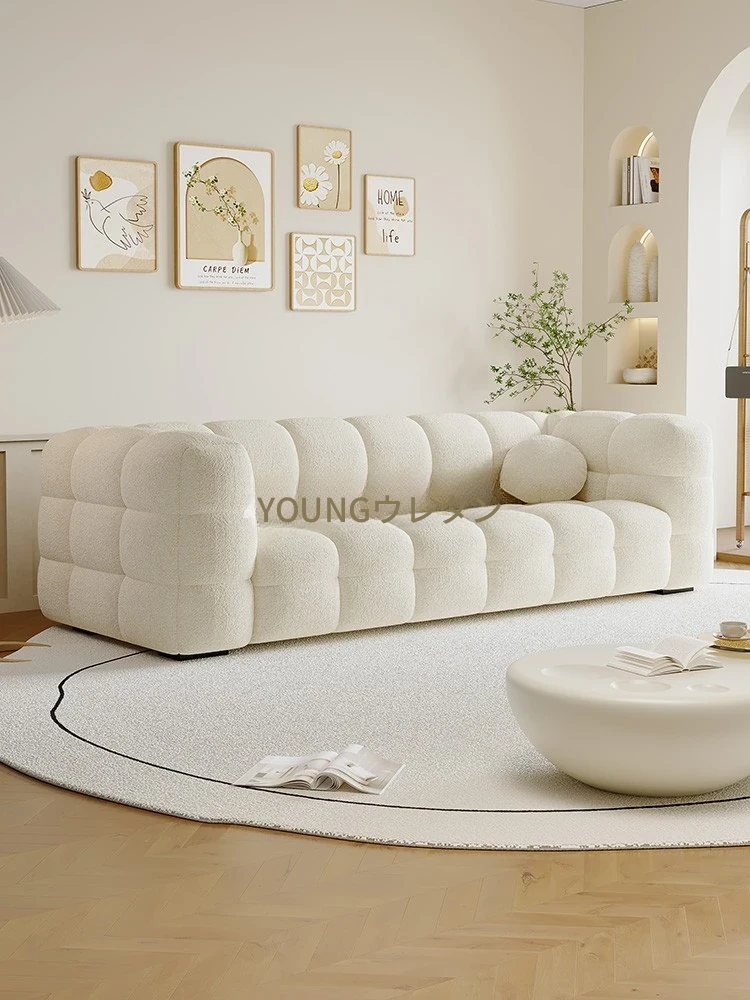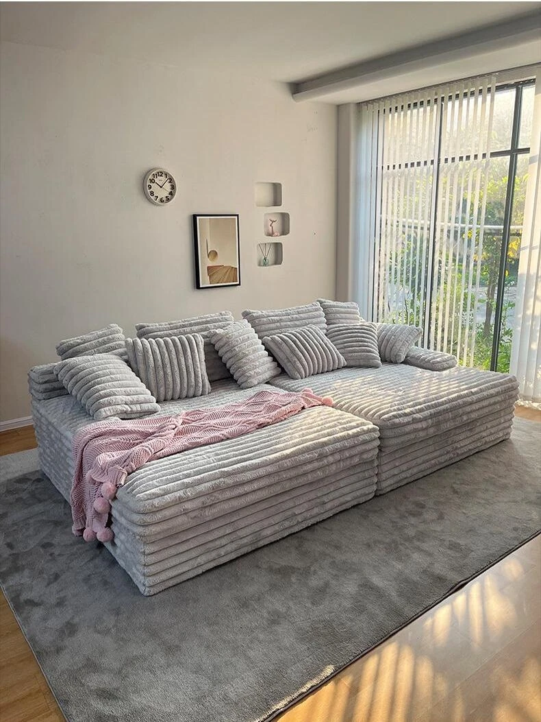 2025年新作!フランス風クリームコットンキャンディソファ – おしゃれなリビングや小型アパートに最適!羊羔毛の直線デザインで、心地よさとスタイルを両立。民宿にもぴったりのアイテム!