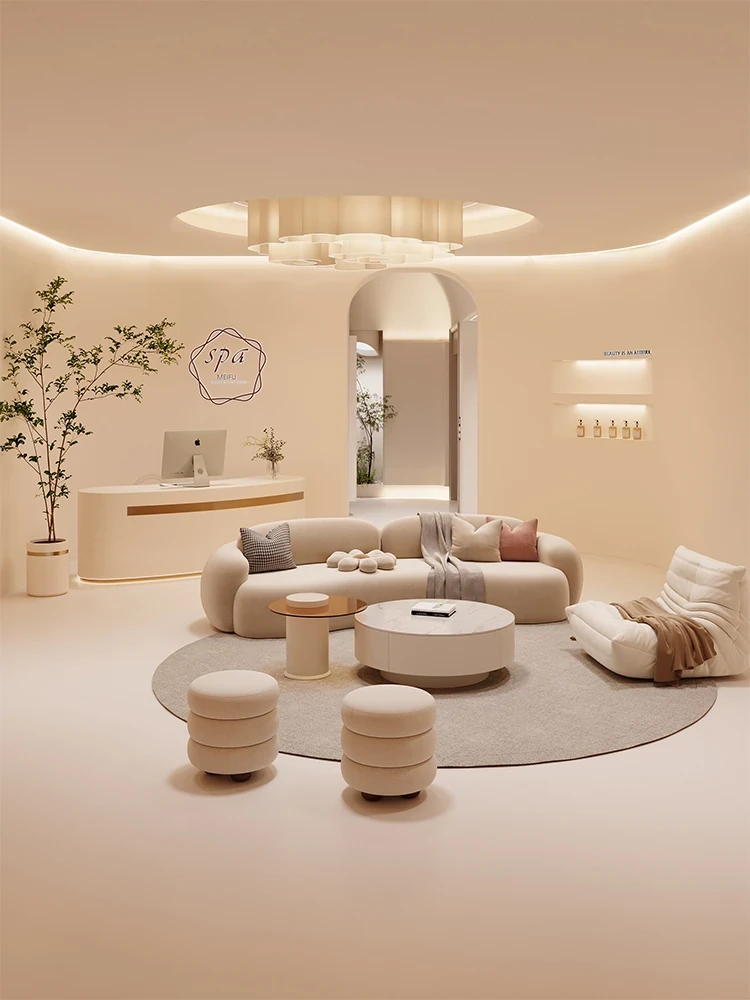 2025年新作!可爱なクリーム色アーチ型ソファ - 小型アパートやウェディングサロン、美容院の休憩スペースにぴったりなデザイン。おしゃれで快適な空間を演出します!