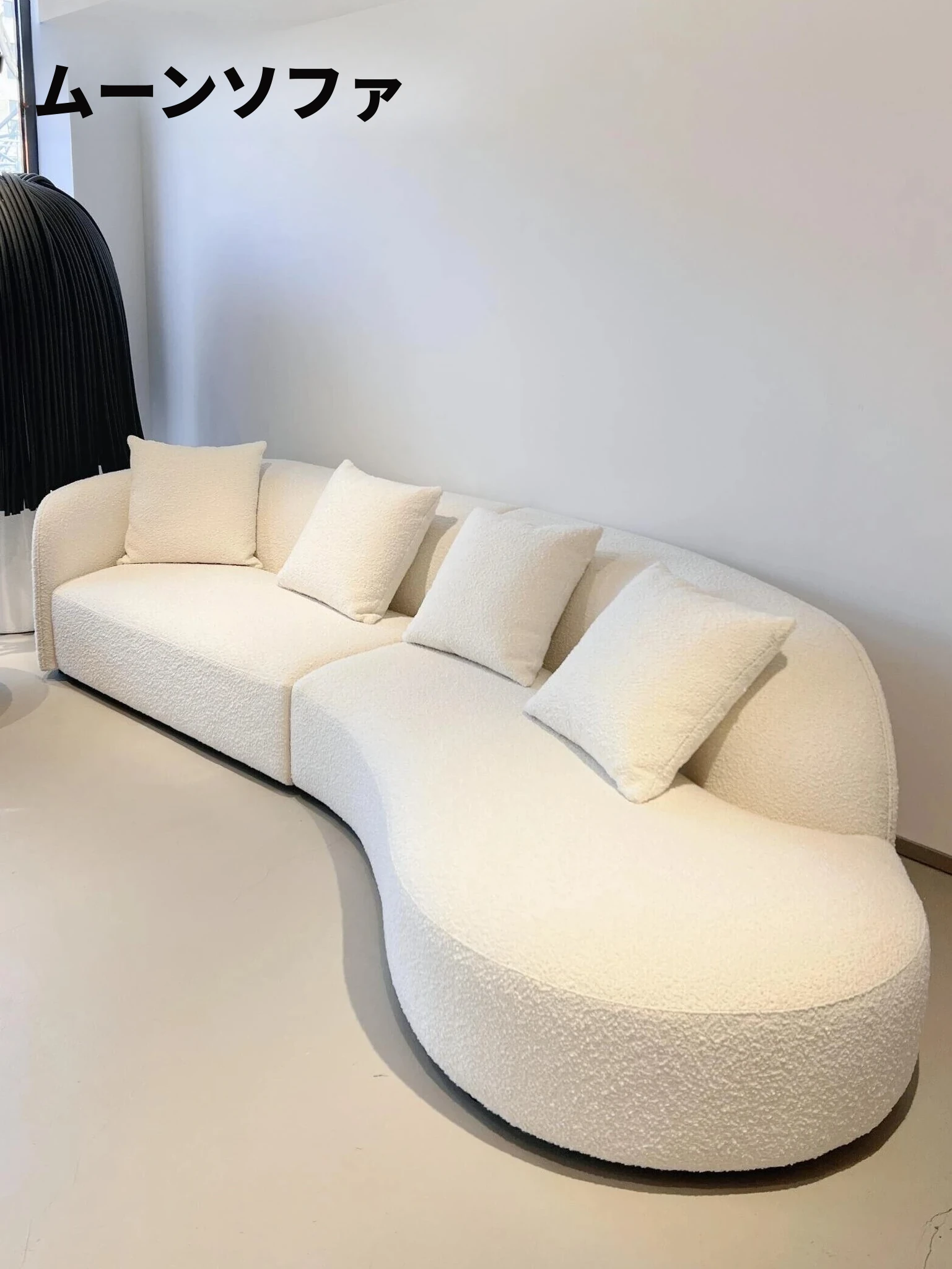 イタリアンテディファブリックのアーチ型ソファ|デザイナーズ小型リビング向け|2024年新作|クリーミーな月の布製ソファで、優雅な空間を演出!