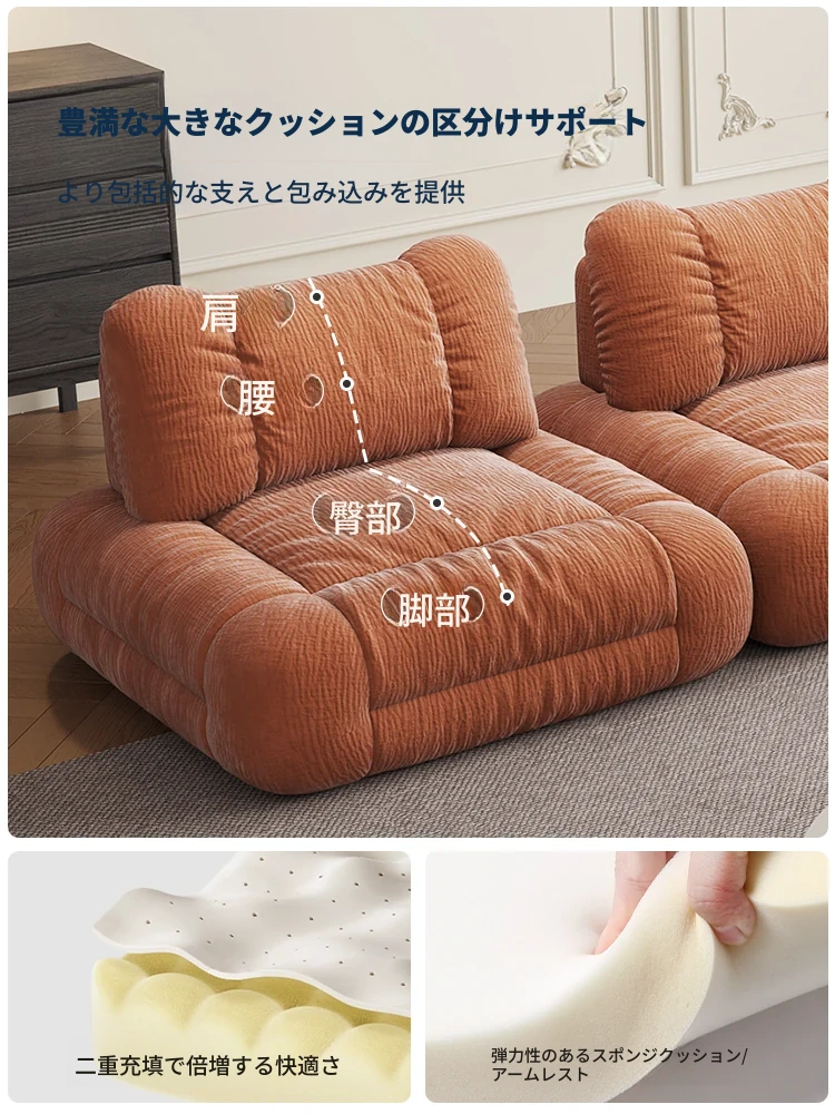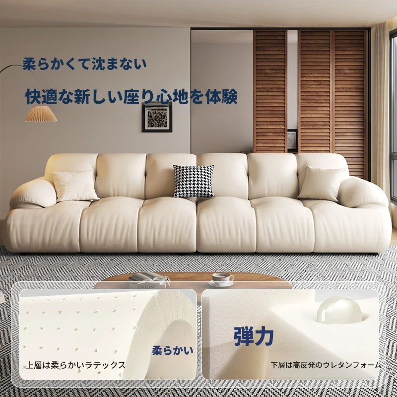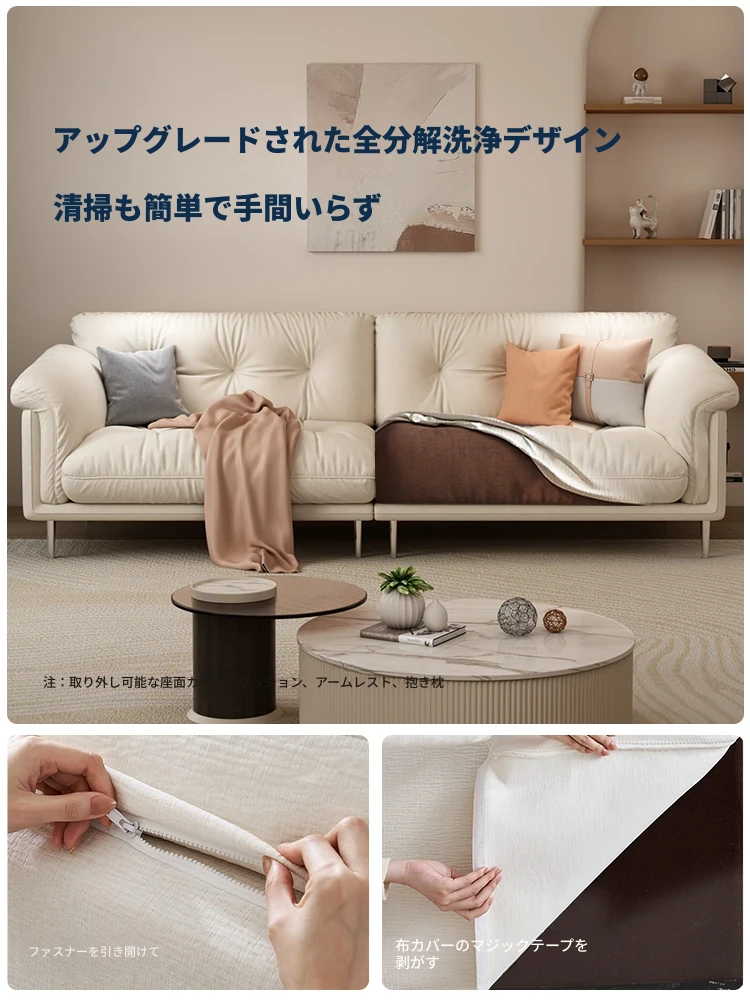 洗える雪ニール製フレンチクリーム風生地の大耳象のソファ、2025年新作!豆腐ブロックデザインで、リラックス空間を演出。おしゃれで快適なリビングにぴったり!