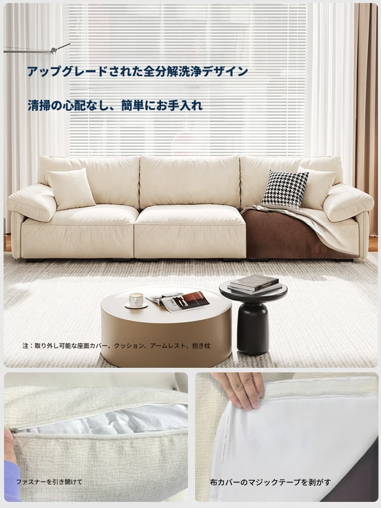 洗える!小型おしゃれソファ|モダンな雲のようなデザイン|リビングにぴったりなフロントファブリックの簡約スタイル|人気のクリーム風ソファで、心地よいくつろぎを実現!