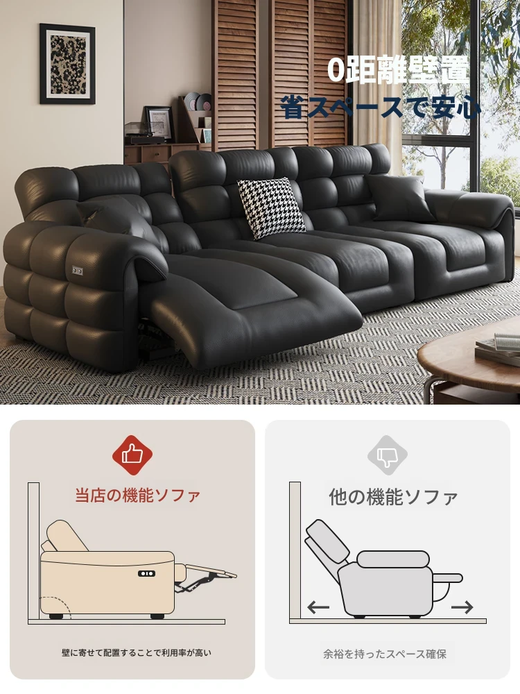 イタリアンミニマルデザイン本革レザー多機能電動ソファ - 壁にぴったり寄せられ、調整可能なスマートラグジュアリーソファで、快適なリラクゼーションを実現!