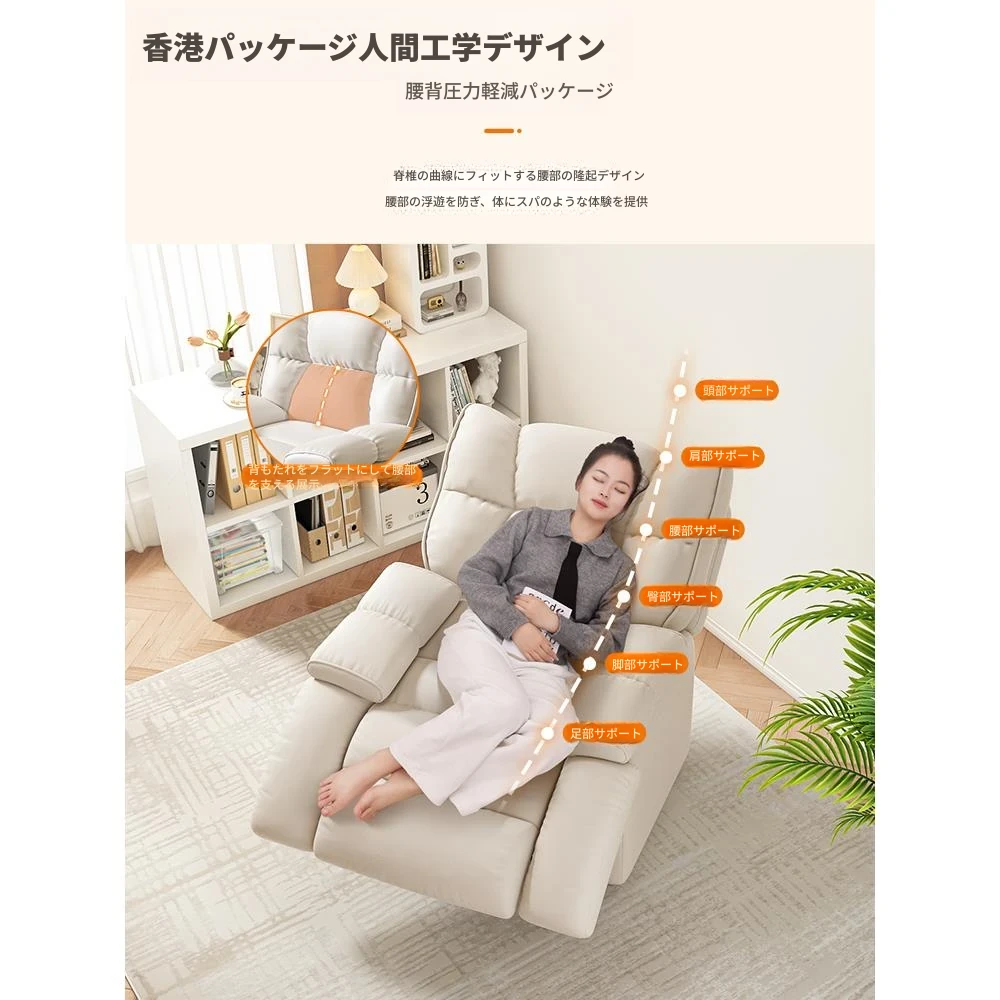 宇宙をテーマにした電動リクライニングソファ!モダンでシンプルなデザイン、猫の爪も気にしない高品質な生地使用。小さな部屋にもぴったりのクリームカラーで、居心地の良いリビングを演出します。