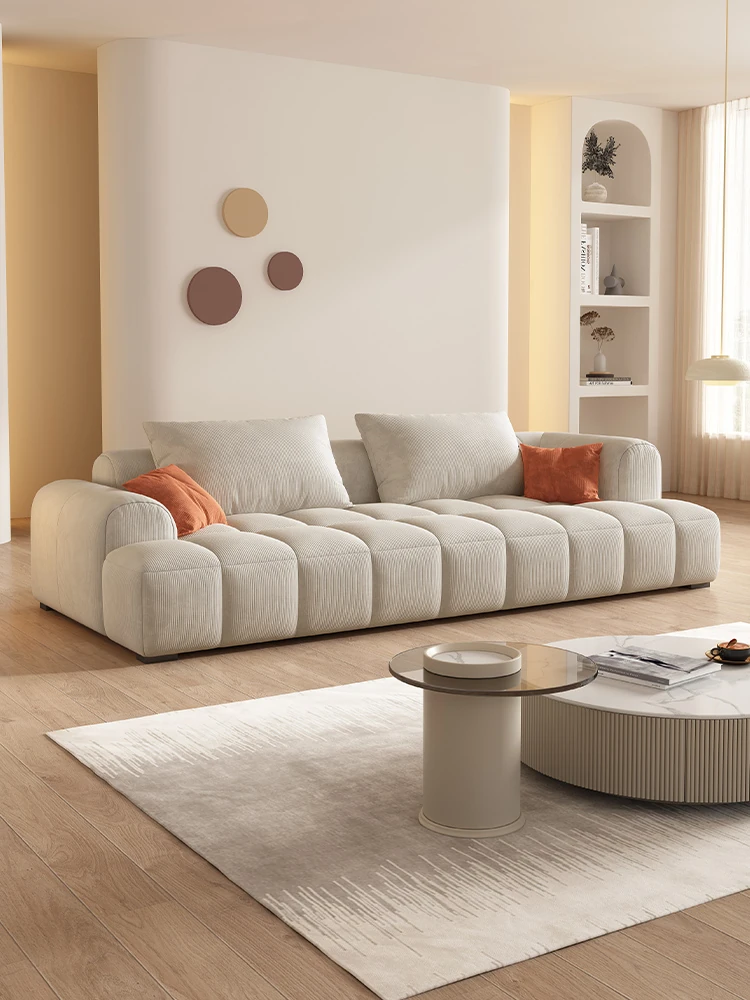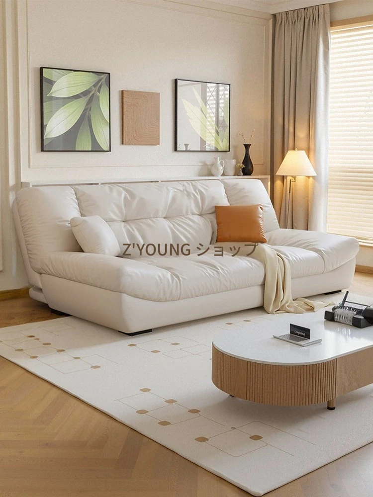 2025年新作!モダンシンプルなリビングソファ - サイズを問わないクリーム風のストレートデザイン、ピアノキーのアクセントが魅力。おしゃれな空間を演出し、くつろぎのひとときを提供します!