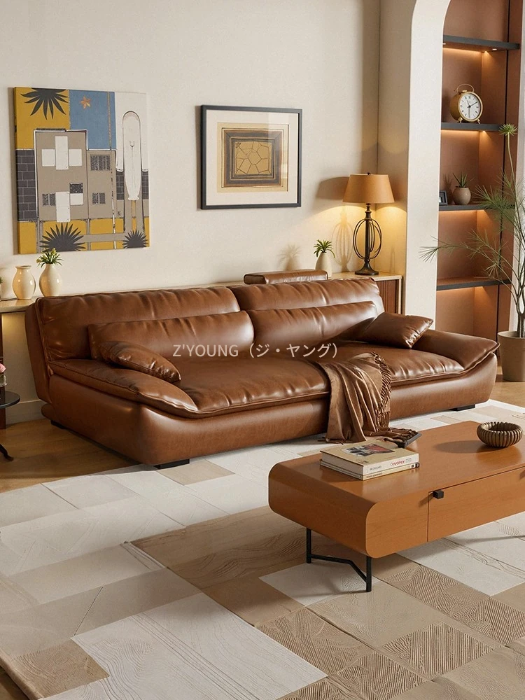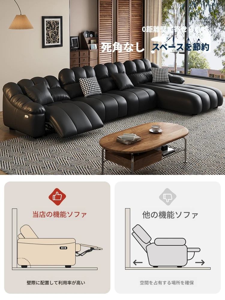 レトロなトップレザー使用!軽やかなラグジュアリー機能ソファ。小さな部屋でも映えるイタリアンミニマルデザインの電動本革カウチソファ。快適さとスタイルを両立したおしゃれなリビングの必需品!