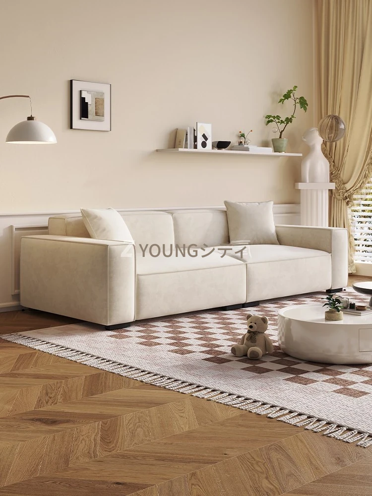 フランス風クリーム豆腐ブロックファブリックソファ - モダン&シンプルなデザイン、リビングルームや小型アパートに最適!快適さとスタイルを兼ね備えた、あなたの生活空間を彩る一品です。