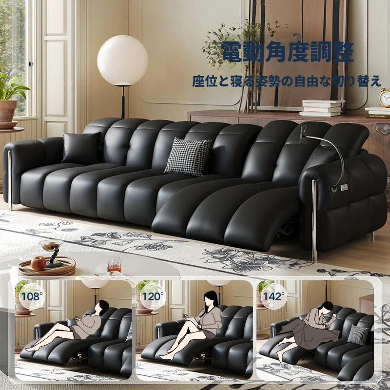 宇宙の電動機能付きリクライニングソファ、真皮製でモダンなデザイン!高級本革とピアノキーのスタイルが融合した、リビングにぴったりのシンプルで洗練されたアイテム。快適さとスタイルを両立させた最高の選択!